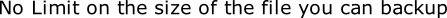 Since iBackIT reads the file and backs up directly to the backup server without first dumping it to another location, there is absolutely no restriction on the size of the file that it can backup,even when compression and encryption are enabled.